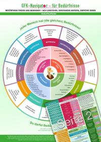 vermittelt mir die Grundlagen der Gewaltfreien Kommunikation in einer Weise, die ich sehr schnell ohne weitere Erklärung verstehe: - Vier Schritte der GfK - Alltagstaugliche Auswahl von Bedürfnissen und Gefühlen - Erste Hilfe-Empathie - Erfolgversprechend bitten Die Rückseite der Übersichtgibt mir eine praktische Anleitung, wie ich unbewusste Kommunikations-Muster, die bisher zu Misserfolgen geführt haben, erkenne und welche intelligenteren alternativen Möglichkeiten der Kommunikation es gibt: - Von der Strategie zum Bedürfnis - 4 Arten, mit Ereignissen oder Aussagen umzugehen - Vom Müssen/Sollen zum Wollen - Vom Loben zum Wertschätzen - Vom Entschuldigen zum Bedauern - Nein sagen - Ein Beziehungsgeschenk Kurz gesagt: Ein A-ha folgt dem anderen. Vor allem aber realisiere ich, dass Gewaltfreie Kommunikation erfordert, mit den eigenen Gefühlen und Bedürfnissen in direktem Kontakt zu sein und diese auch formulieren zu können. GFK im Zusammenhang mit Bedürfnissen sowie Gefühlen, Emotionen und StimmungenUm tiefer in die Themen Gefühle und Bedürfnisse in Zusammenhang mit GFK eintauchen können, gibt es zwei weitere Übersichten, die einzeln oder als 3er-Pack mit dem hier beschriebenen >> GFK-Navigator - für Gewaltfreie Kommunikation (10% Gutschein Code: „spiritp10") gekauft werden können: