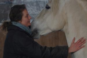 Die Pferde bringen alles in die Sichtbarkeit, all unsere unentdeckten Schatten, aber auch unser unentdecktes Potential! Der weiße Hengst hat die souveräne Kraft und Liebe hinter der Unsicherheit und unglücklichen Verwirrung der Frau zum Vorschein gebracht. Es ist immer wieder ein Wunder.