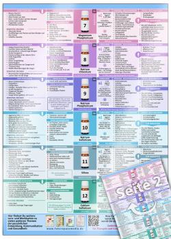 Duo Schüßler-Salze komplett Nr. 1 bis 24 - Auf einen Blick. 2 laminierte ÜbersichtenKarten-Set von Samuel Cremer, Christian Schumacher gesehen von Birgit Kratz Als ich einmal nach einer langen Autofahrt mit unglaublichen Kopfschmerzen bei meinen Schwiegereltern ankam, gab mir meine Schwiegermutter ein Glas mit heißem Wasser. "Trink das mal in kleinen Schlucken!", meinte sie. Schon nach kurzer Zeit ging es mir deutlich besser. Auf die Frage, was sie mir gegeben habe, antwortete sie: "Die heiße 7. Ein Schüßler-Salz". Seither interessieren mich Schüßler-Salze. Derer gibt es ne Menge. Woran erkenne ich, welches Schüßler-Salz mir helfen kann? Und wann nehme ich am besten welche Menge? Diese ansprechend gestalteten Übersichten machen es leicht, die richtige Antwort zu finden ... Ich habe eine Schwäche für gut gemachte Übersichten. Und dieses Duo begeistert mich wirklich. Bücher über Schüßler-Salze habe ich mehrere. Aber diese farblich gekonnt gestalteten Übersichten bringen das geballte Wissen auf den Punkt: Linke Hälfte der ÜbersichtenDen Menschen steht ins Gesicht geschrieben, welches Schüßler-Salz ihnen fehlt. Diese Antlitzzeichen (Gesichtsfarbe, Hautbeschaffenheit, Augen, Nase, Zunge,... sind für jedes Salz wohlgeordnet aufgeführt. Dazu noch weitere optische Aufälligkeiten (sonstige Zeichen), die die Auswahl erleichtern. Was führt zur Verbesserung des Befindens? Was zu Verschlimmerung? Antworten auf diese Fragen bringen noch mehr Klarheit. Rechte Hälfte der Übersichten- Körperliche Beschwerden, unter denen der Mensch leidet, - psychische Beschwerden, aber auch - Gewohnheiten oder besondere Bedingungen, unter denen man arbeitet oder lebt, können Mangelzustände erzeugen, die durch die Einnahme von Schüßler-Salzen ausgeglichen werden können. Die Mitte der Übersichtengibt Auskunft darüber, wie die Einnahme des interessiewrenden Schüßler-Salzes zu erfolgen hat, also wann wieviele Pastillen genommen werden sollten. Und zum Abrunden des Steckbriefs Antworten auf die Fragen: Was ist die besondere Stärke / der typische Einsatz des Mittels? Die Laminierung der Übersichtenist von hoher Qualität und macht absolut Sinn - weil diese Übersichten für den regelmäßigen Gebrauch in der täglichen Praxis oder zu Hause gedacht und gemacht sind und oft in die Hand genommen werden können und sollen, ohne dadurch Schaden zu nehmen.