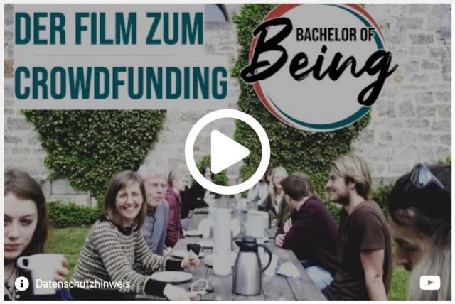 Wir - Wolf Sugata Schreiber und Imke-Marie Badur - haben uns einem Bildungs-Projekt für junge Erwachsenen verschrieben, dem Bachelor of Being. Für den Bachelor of Being haben wir ein Crowdfunding gestartet. ... zögern noch. Sie verstehen uns schlicht nicht. Oder sie warten darauf, dass wir ohne Geld anfangen, um uns dann zuzusehen, wir wir uns ehrenamtlich abrackern (was wir ja bereits tun) oder scheitern. >> Hier siehst Du einen inspirierenden Film über unser Projekt - Anschauen lohnt sich!!!! Es wäre super-, mega- gigatoll von Dir, wenn Du uns unterstützen würdest!